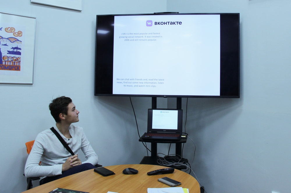 21 октября на занятии клуба английского языка участники с увлечением обсудили разные полезные и бесполезные вещи в жизни. Один из участников подготовил интересную презентацию о плюсах и минусах социальных сетей в жизни человека, а также высказал свою точку зрения по данному вопросу. В ходе выступления участники задавали разные вопросы по теме.