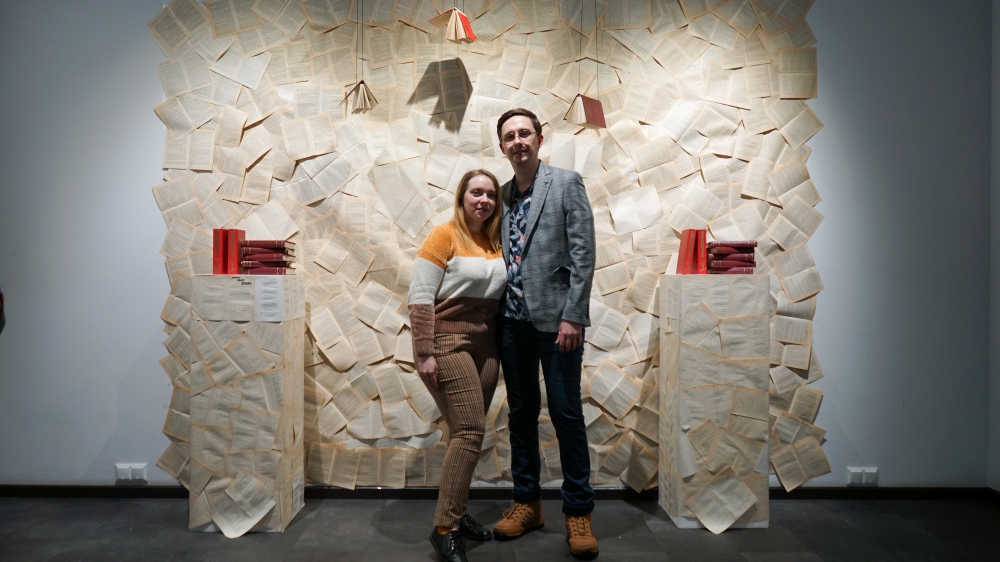 Больше всего гостей выставки заинтересовала стринг-арт картина и шикарная фотозона из книжных листов.