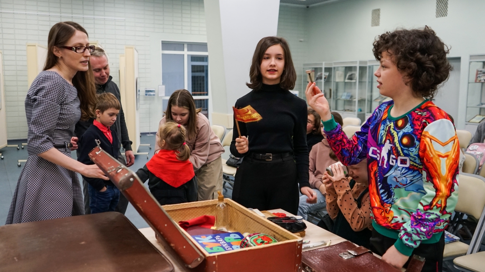 Для юных посетителей в День краеведа состоялись интерактивная площадка «Из советского детства» и мастер-класс «Северный морской». Участники узнали о жизни школьников советского Мурманска, попробовали писать пером и чернилами, а также сделали на память открытку в технике «айрис-фолдинг».