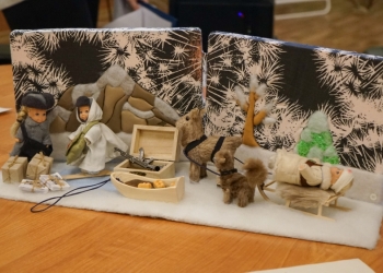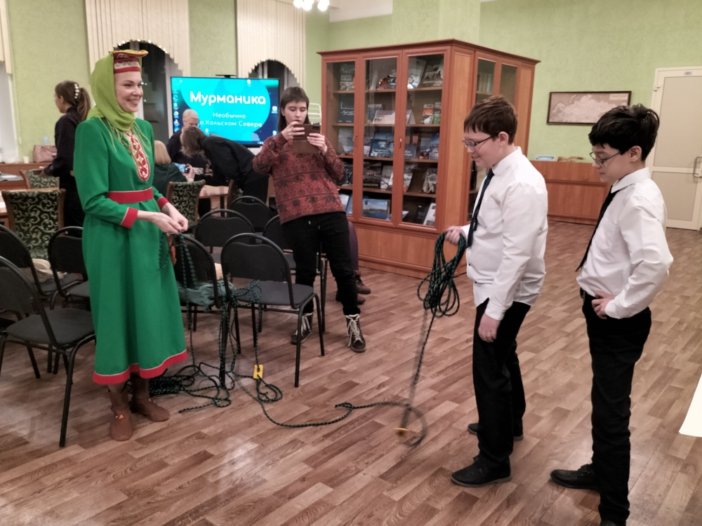 Продолжила конференцию интерактивная площадка «Дорогою оленей фронтовых» под руководством председателя Общественной организации содействия правовому просвещению и сохранению культурного наследия саамов Мурманской области Виктории Гусевой. Участники встречи услышали песни на русском и саамском языках, рассказ об использовании оленьего транспорта в годы Великой Отечественной войны, узнали, как правильно метать аркан и стрелять из арбалета, проявили творческие способности на мастер-классе «Каньги».