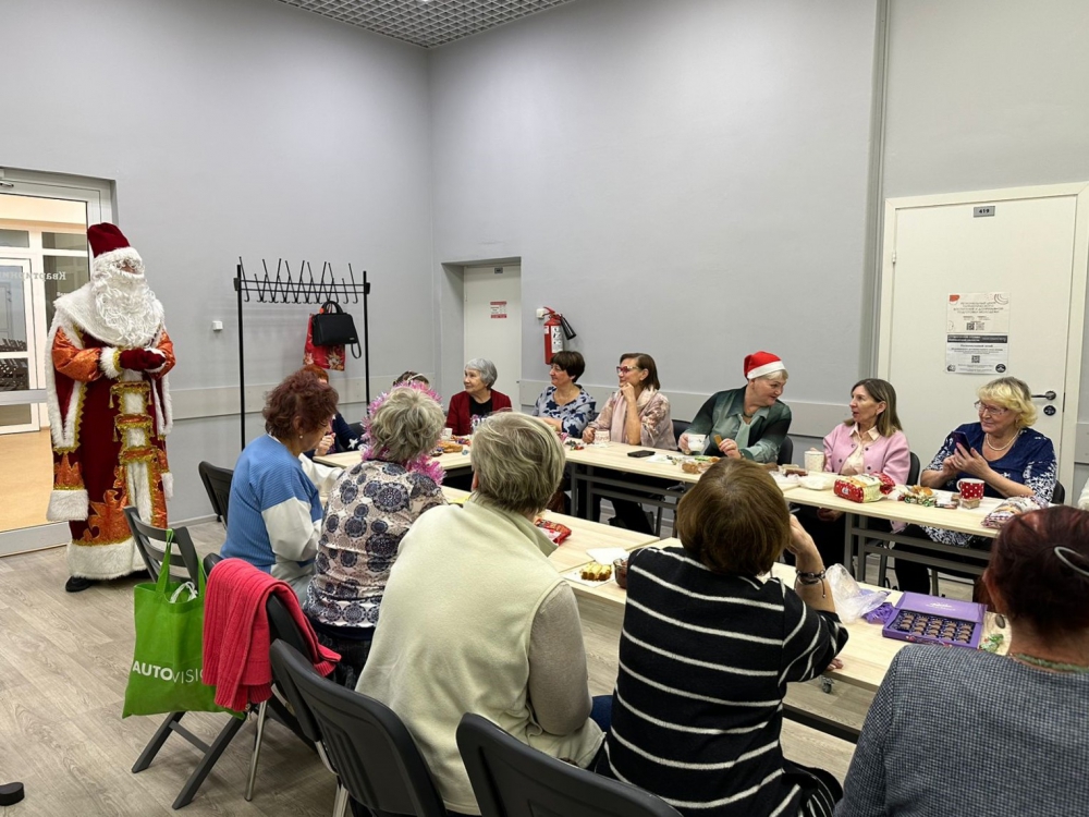На чаепитие клуба «Старшие» пожаловал сам Дед Мороз, поздравив всех с наступающим Новым годом. Дружные песни под караоке зарядили участников новогодней встречи позитивным новогодним настроением.