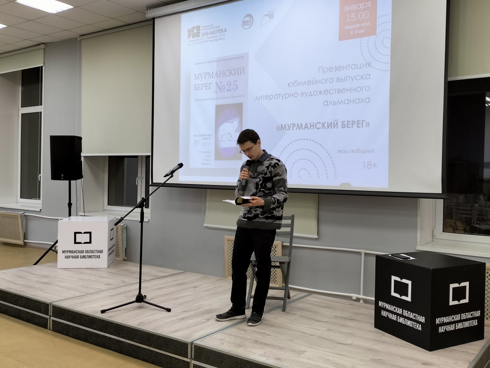 13 января в Мурманской государственной областной универсальной научной библиотеке состоялась презентация юбилейного выпуска литературно-художественного альманаха Мурманского отделения Союза российских писателей «Мурманский берег».
