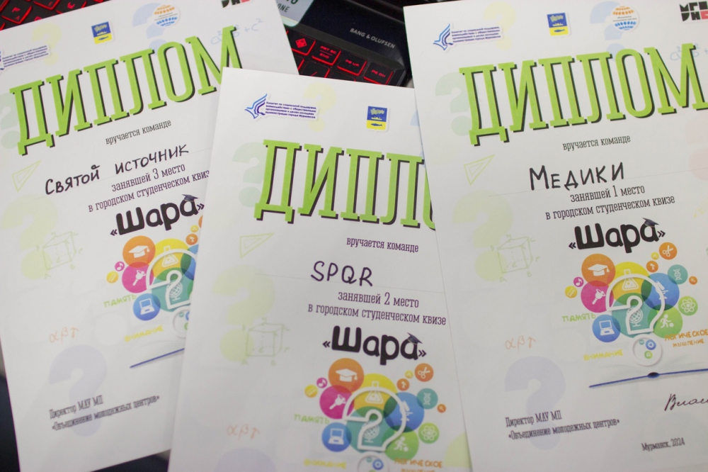 Первое место заняли команды «Учителя в законе» из Мурманского педагогического колледжа, «Воронки» из Мурманского колледжа искусств и «Медики» из Мурманского медицинского колледжа. Почётное второе место заняла команда «SPQR» из Мурманского арктического университета, а третье место – команда «Святой источник» из Мурманского арктического университета.