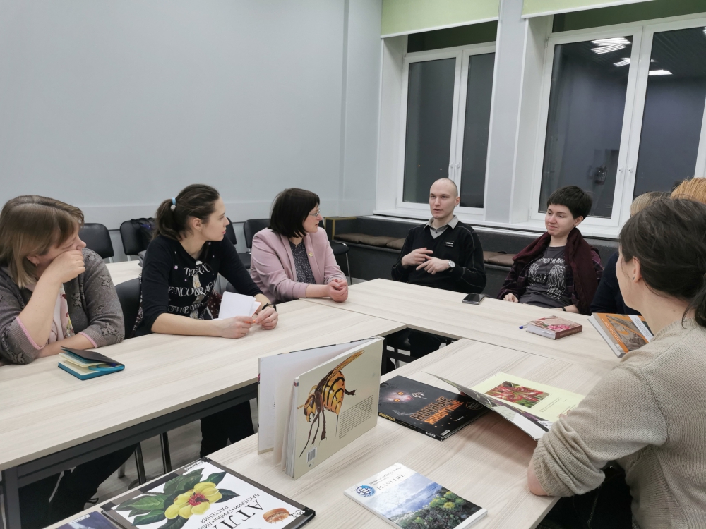 Традиционно в начале встречи присутствующие повторили пройденные английские слова, интересные предложения. Куратор клуба Любовь Кочергина подготовила презентацию о растениях. Участники встречи узнали о британском натуралисте Дэвиде Аттенборо. Этот человек известен не только как телеведущий и натуралист. Он – защитник экологии и один из пионеров документальных фильмов о природе, подробно рассказывающих обо всех формах жизни на Земле и их взаимодействии. Аттенборо – прекрасный писатель-документалист, на встрече участники познакомились с его книгой «Жизнь на нашей планете» на русском языке из фонда библиотеки.