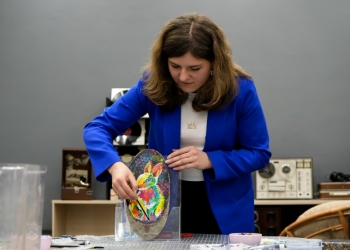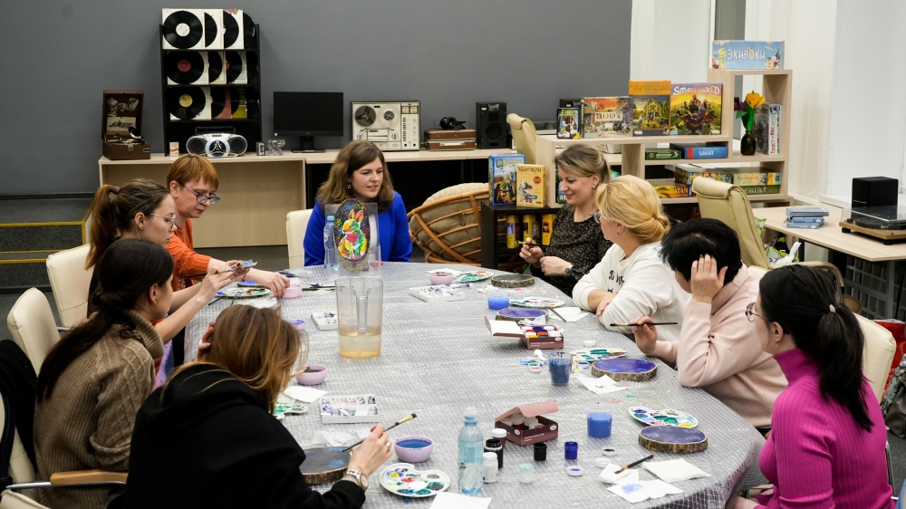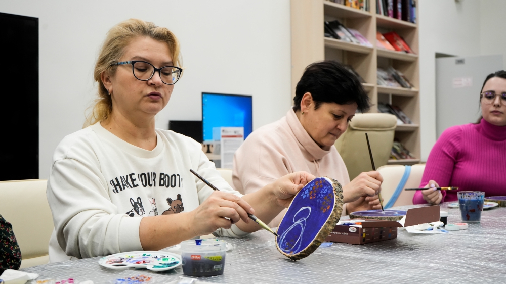 Гости библиотеки познакомились с особенностями работы по натуральному материалу и создали живописную, дерзкую композицию акриловыми красками.
