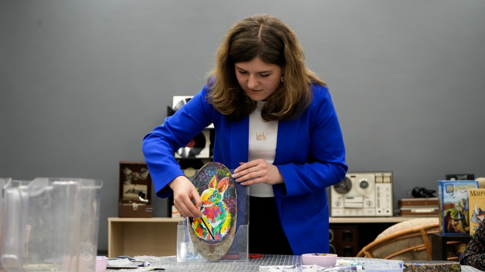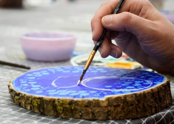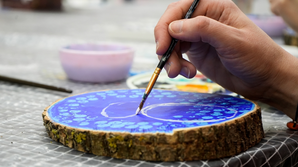 Вместе со специалистом зала искусств Анастасией Худяковой участники мастер-класса нарисовали яркого и позитивного зайчишку в стиле поп-арт на спиле дерева.