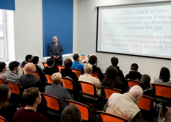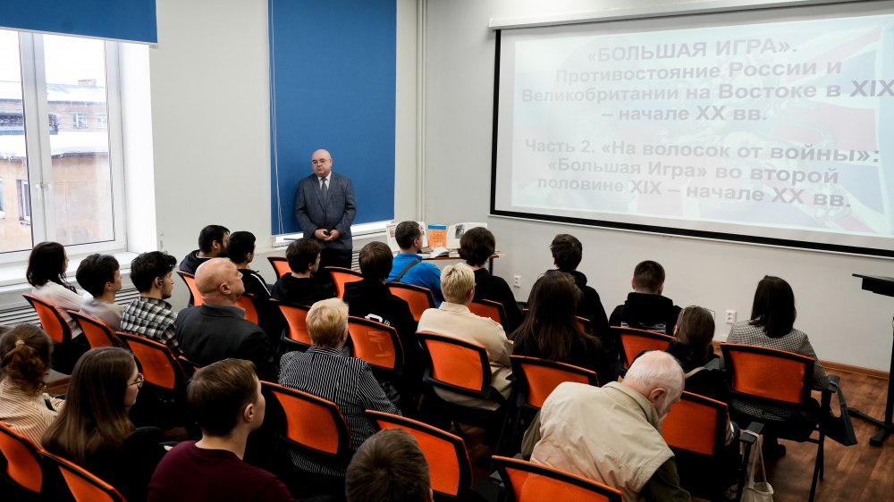 2 февраля кандидат исторических наук, доцент кафедры истории и права, почетный работник сферы образования Российской Федерации Владислав Владимирович Кузь прочитал вторую часть лекции «Большая игра: Россия и Великобритания. Противостояние на Востоке в XIX веке» – «На волосок от войны».
