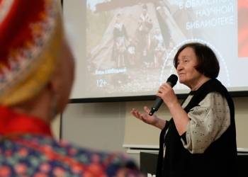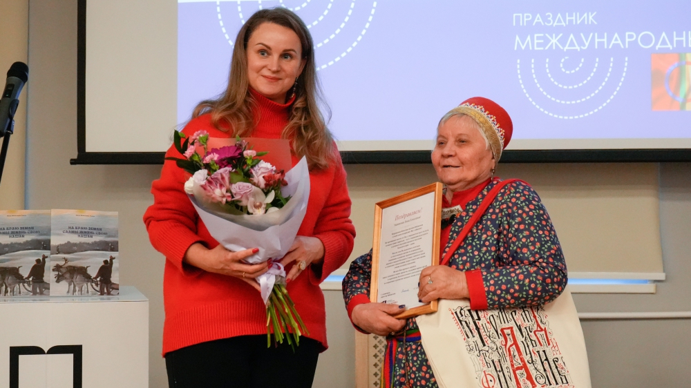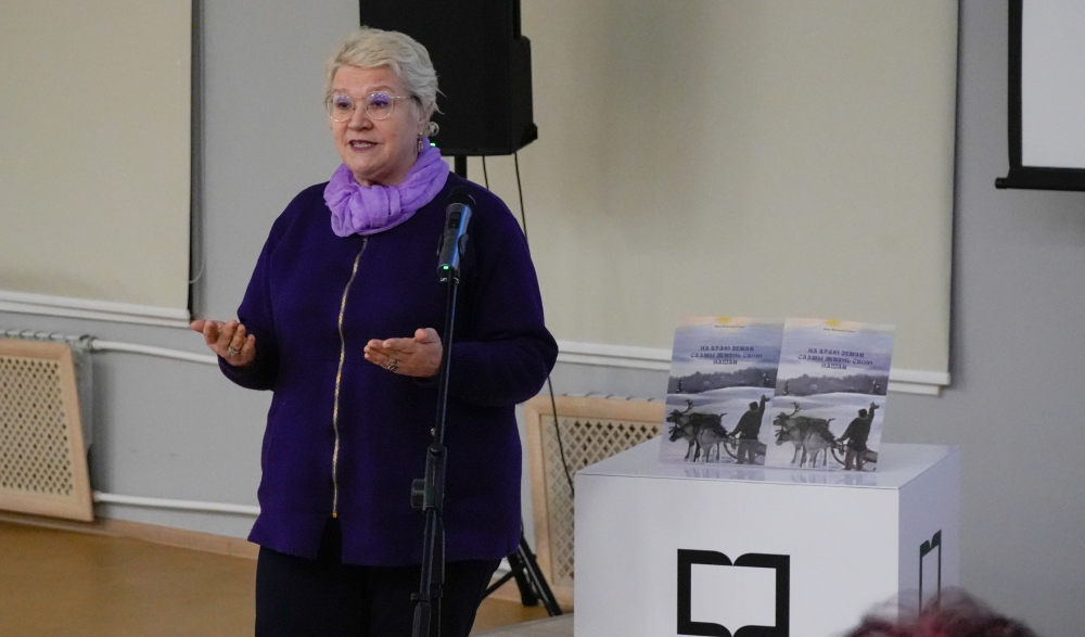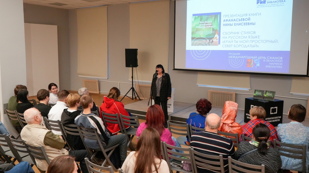 Нина Елисеевна Афанасьева – известный педагог, специалист по языку и письменности саамского народа, общественный деятель. В течение многих лет Нина Елисеевна занимается вопросами сохранения и развития саамского языка на Кольском полуострове. Она представила свою новую книгу, сборник стихов на русском языке «Край ты мой просторный, Север бородатый..».