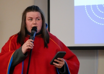 Во второй части мероприятия Полина Константиновна Харыбина, член Совета по коренным малочисленным народам Севера при Правительстве Мурманской области, член Общественной палаты Мурманской области, создатель электронного сервиса для обучения саамскому языку, рассказала о первом в России русско-саамском онлайн-переводчике. Он создан по проекту родовой общины «Лопарская» при финансовой поддержке Министерства внутренней политики Мурманской области.