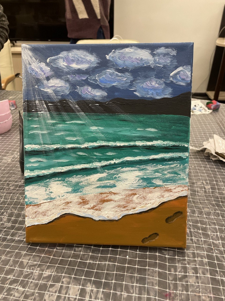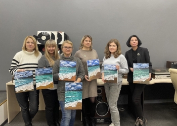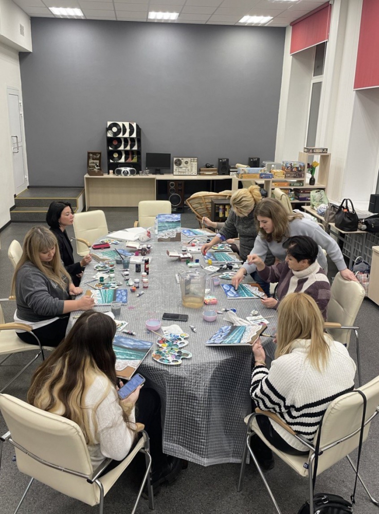 Вместе со специалистом зала искусств Анастасией Худяковой участники мастер-класса поэтапно создали морской пейзаж своими руками.