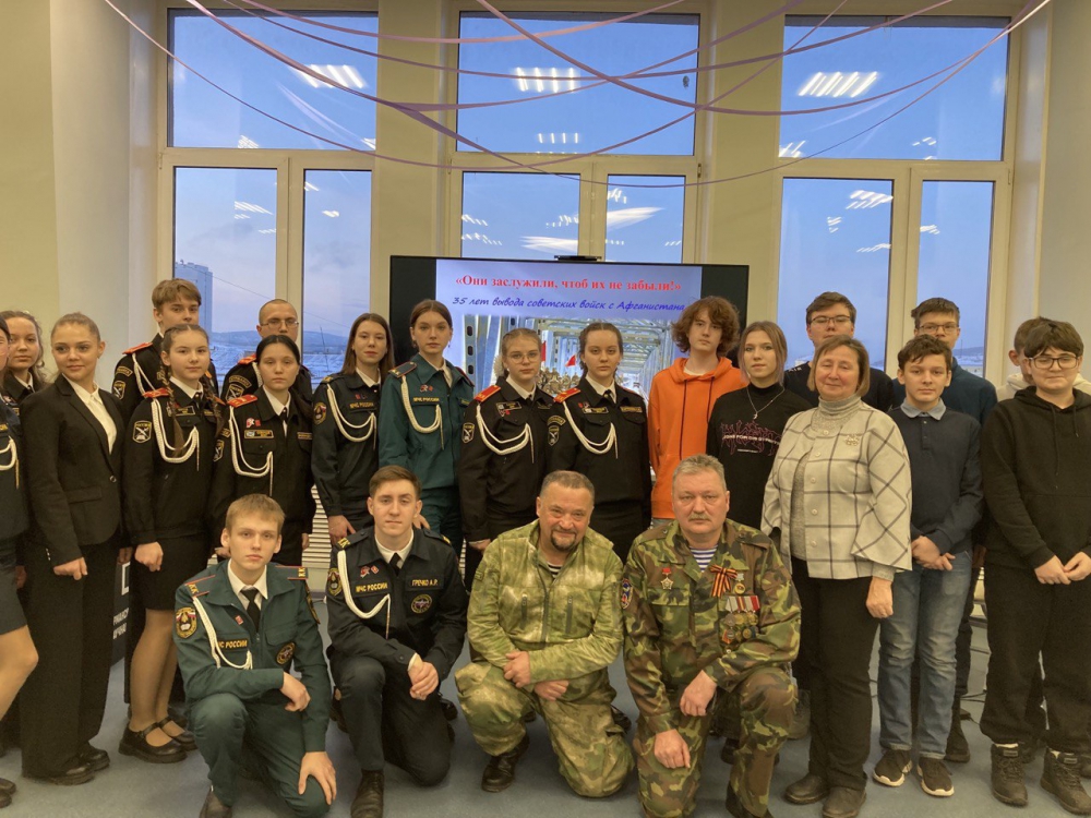 Встречу посетили учащиеся Мурманской кадетской школы, гимназии № 2, СОШ № 43. Школьники задавали множество вопросов: какие ощущения после первого боя; каким оружием воевали; чему научила война; кто первым из афганцев получил звание «Героя Советского Союза»; в чем отличие сегодняшней СВО от войны в Афганистане?