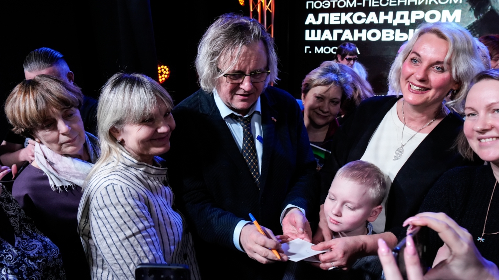Александр Алексеевич – автор множества хитов группы «Любэ» и «Иванушки International». В первой части вечера поэт поделился некоторыми секретами создания знаменитых текстов. Так, песня «Комбат» оказалась посвящением дяде, крестному Александра Шаганова – Василию, участнику Великой Отечественной войны и освободителю блокадного Ленинграда.