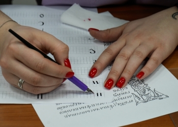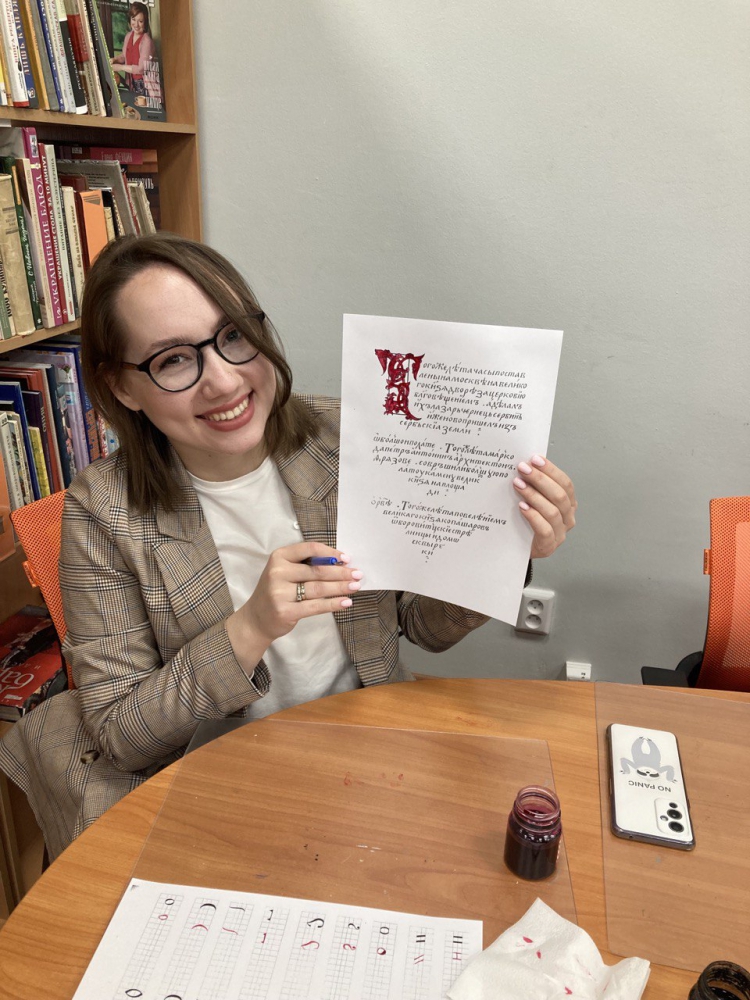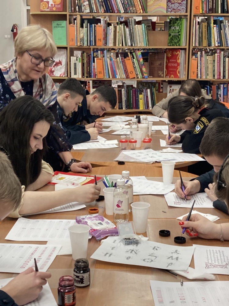 Мастер-класс «Шрифты православной книги» дал представление его участникам о красоте письма прошлого времени – «полууставе», который использовался для переписки текстов православных книг. Ребята научились писать пером и тушью, используя шрифт второй половины XIV века.