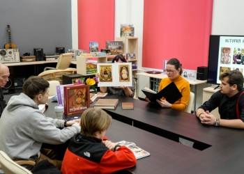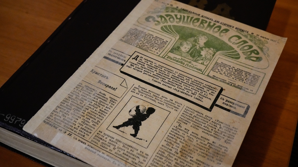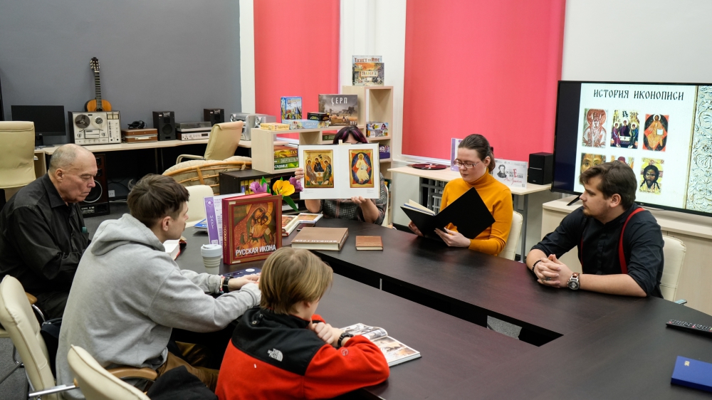 В ходе экскурсии по книгохранению «Православная книга. Связь времен» были продемонстрированы факсимильные воспроизведения «Остромирова Евангелия», древнейшей датированной рукописной книги середины XI века, и «Евангелия» («Нового Завета») 1823 года – личного экземпляра Федора Достоевского, подаренного писателю по дороге в Омский острог. Интерес вызвала книга «Год на Севере» Сергея Максимова 1859 года, на страницах которой приведена легенда о мастере-строителе Воскресенского собора в Коле. Участники экскурсии перелистнули страницы рождественских и пасхальных номеров известных иллюстрированных журналов начала XX века для семейного чтения «Нива» и «Задушевное слово».