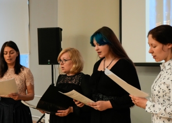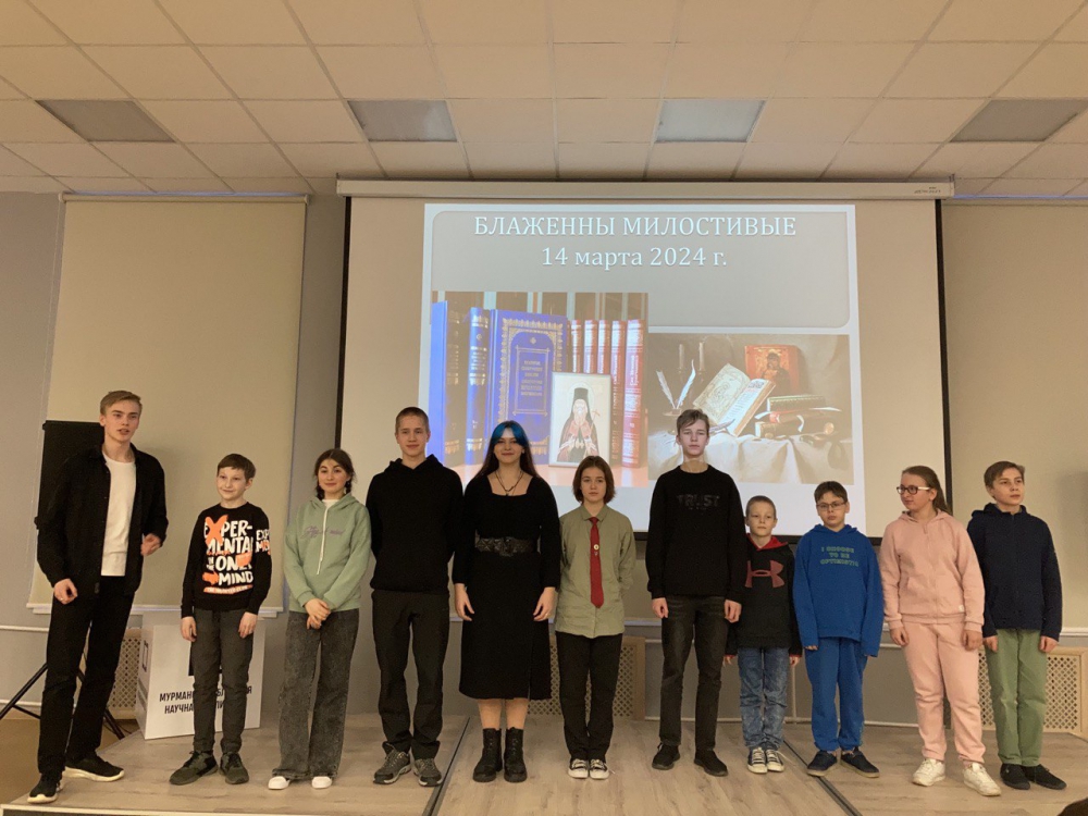 На литературно-музыкальном вечере «Блаженны милостивые» выступили учащиеся воскресной школы храма Всех святых г. Мурманска с постановкой «Димон» по мотивам повести протоиерея Александра Торика. Присутствующие смогли насладиться пением ансамбля хора Мурманской областной филармонии.