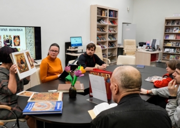 Обзор изданий по иконописи «О святом и прекрасном» познакомил с историей иконописи, основными иконописными школами и направлениями. Были представлены альбомы «Современная православная икона», «Мир русской иконы». Особый интерес у присутствующих вызвали издания о персоналиях иконописцев – Феофане Греке, Андрее Рублеве и Дионисии.