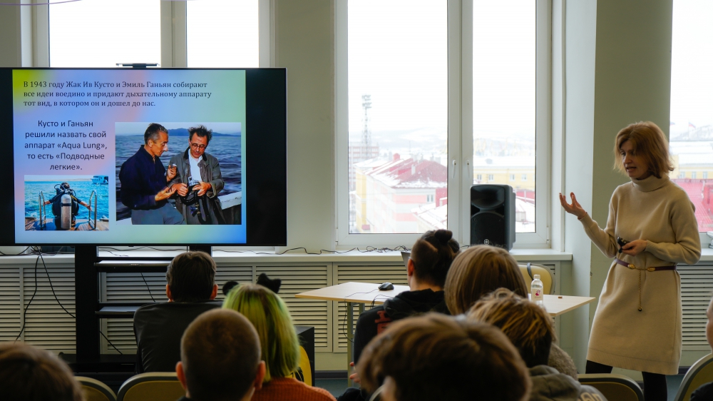 Лекция «Как услышать океан?» Инны Рыжик, кандидата биологических наук, старшего научного сотрудника Мурманского морского биологического института, рассказала о том, кто и как изучает Мировой океан.