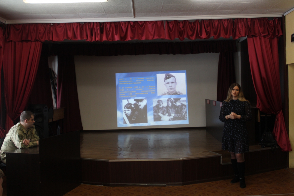 Слушателями лекции стали военнослужащие контрактной службы Росгвардии. Они узнали о том, как с ноября 1957 года по март 1960 года в военном посёлке Новое Луостари (ныне поселок Корзуново) Мурманской области проходил военную службу лейтенант Ю. А. Гагарин. В 1959 году в г. Заполярном Печенгского района Мурманской области у семьи Гагариных родилась первая дочь Елена. Именно с Кольской земли 11 марта 1960 года молодая семья Гагариных отбывает к новому месту назначения – Звездный городок в Подмосковье.