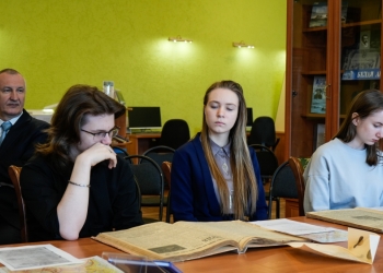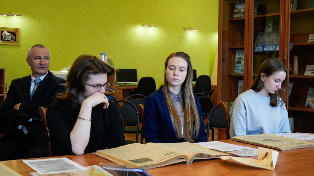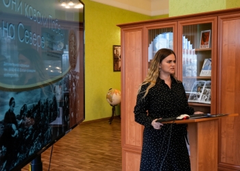 Главный библиотекарь отдела краеведения Анна Сергеевна Токарева провела обзор-визуализацию материалов коллекции «Сохраняя память о войне» электронной библиотеки «Кольский Север», познакомила участников встречи с фронтовыми письмами бойцов и командиров Карельского фронта и Северного флота и с отдельными периодическими печатными изданиями военных лет из фондов библиотеки. Также специалист библиотеки представила книжно-иллюстративную выставку «Битва за Север» с артефактами войны – вещами советских и немецких солдат и командиров, обнаруженными на полуостровах Средний и Рыбачий.