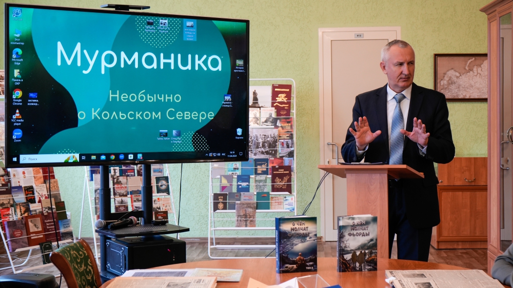Лекция сопровождалась демонстрацией военных карт, фотографий, наградных листов, а также фильма «Оборона Заполярья», подготовленного сотрудниками отдела краеведения Мурманской областной научной библиотеки.