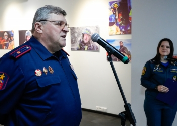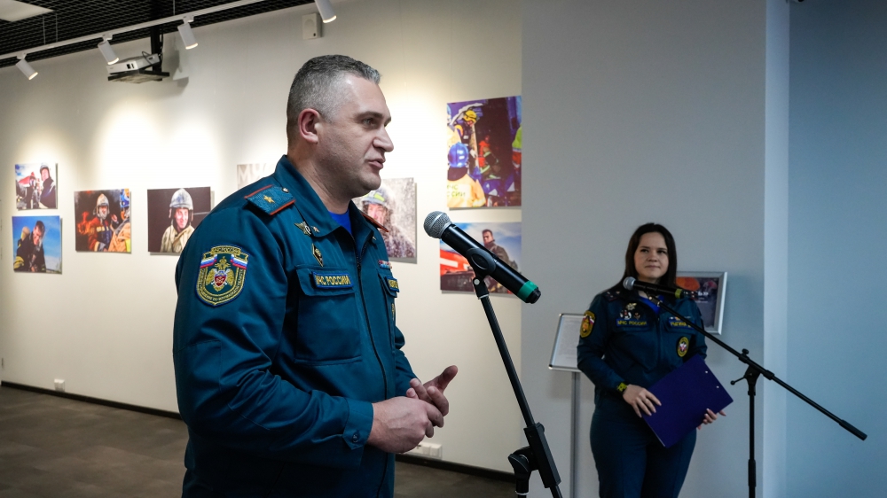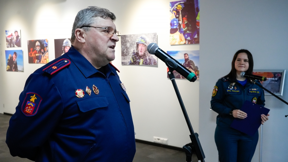Свое приветственное обращение к гостям выставки произнес начальник Главного управления МЧС России по Мурманской области генерал-майор внутренней службы Руслан Владимирович Назаров, а исполняющий обязанности начальника Управления Залесов Анатолий Васильевич отметил, что выставка отдает дань уважения профессии пожарного.
