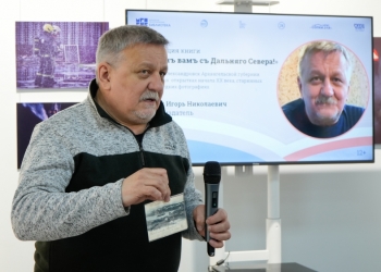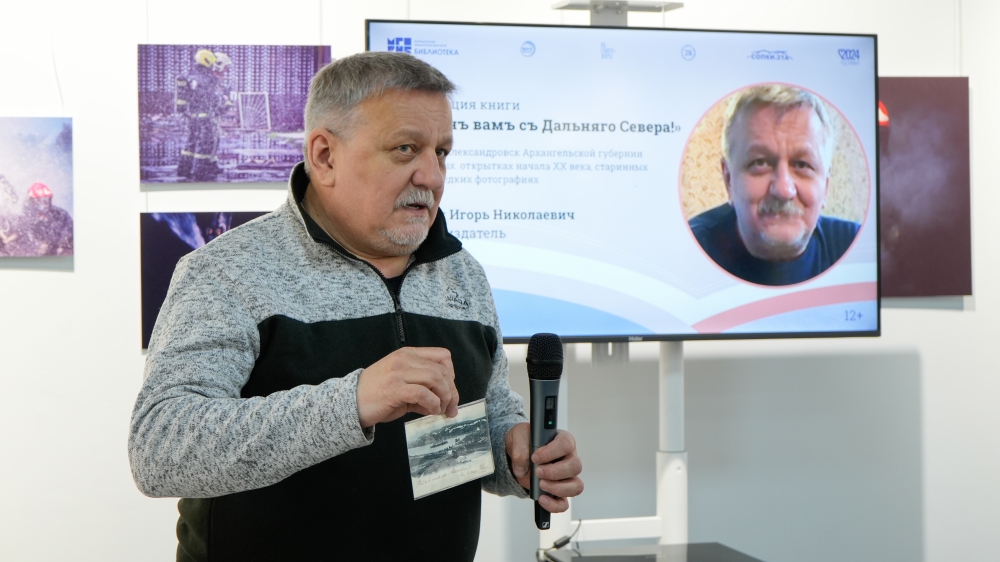 Свою новую книгу «Поклонъ вамъ съ Дальняго Севера!». Мурман и Александровск Архангельской губернии на почтовых открытках начала ХХ века, старинных картах и редких фотографиях представил автор и издатель Игорь Опимах.