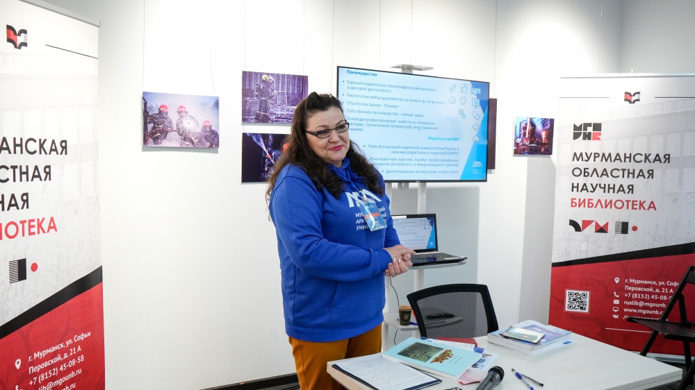 С деятельностью издательства Мурманского арктического университета посетителей книжной ярмарки познакомила начальник редакционно-издательского отдела университета Ирина Крисанова.