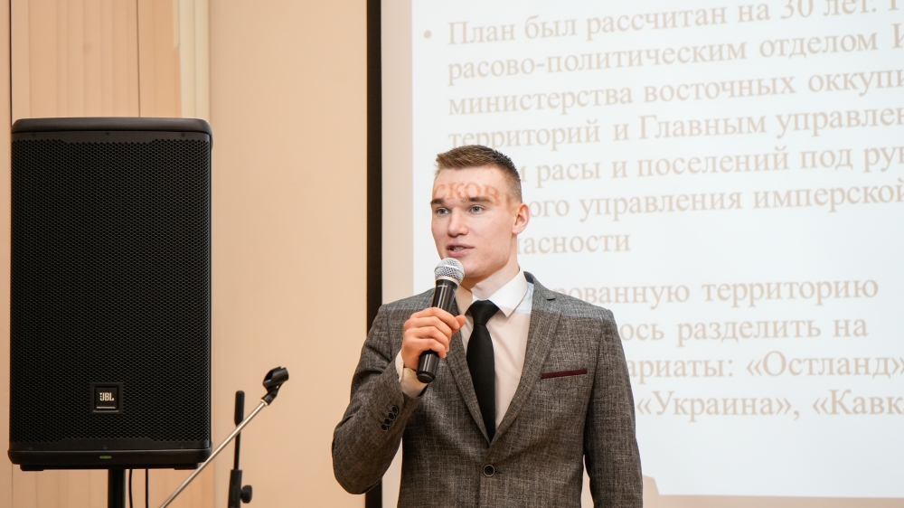 Лекцию «Оккупационная политика нацистской Германии и стран Оси на территории СССР в 1941-1944 гг.» прочитал Вячеслав Газизов, преподаватель Мурманского педагогического колледжа, лектор российского общества «Знание». Он рассказал о планах нацистской Германии и стран Оси в отношении захваченных территорий СССР, проведении оккупационной политики, дал сравнительную характеристику разных оккупационных режимов.