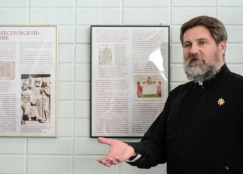Руководитель отдела культуры Мурманской епархии Пискунов Тимофей Владимирович продекламировал отрывок середины XI века из сказания о Борисе и Глебе на древнерусском языке, он отметил важность средневекого текста, как культурного наследия России.