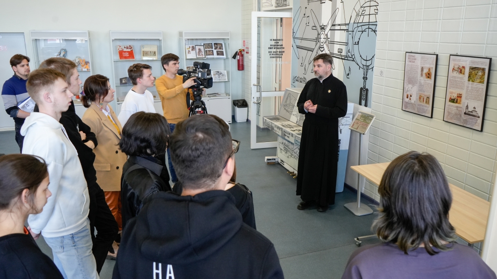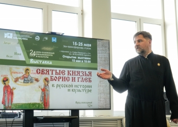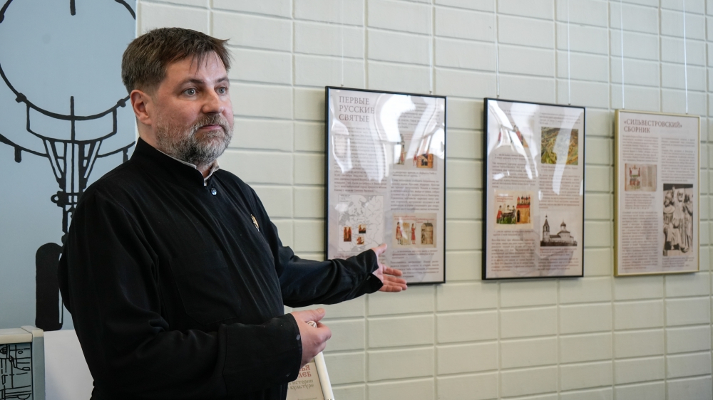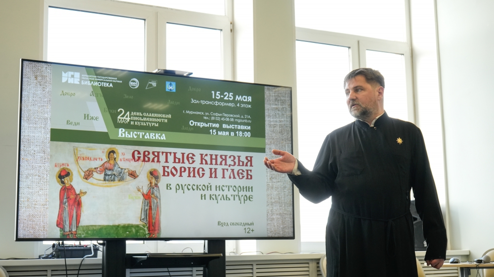 Мероприятие началось с экскурсии по выставке «Святые князья Борис и Глеб в русской культуре», приуроченной ко Дню славянской письменности и культуры. Руководитель Отдела культуры Мурманской епархии Тимофей Пискунов познакомил участников проекта с историей создания средневековых изображений и текстов, раскрыл духовное значение святых мучеников Бориса и Глеба для истории и культуры России.