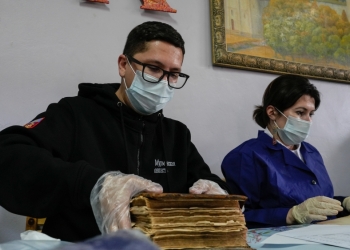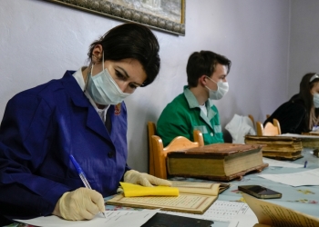 21 мая состоялась вторая встреча участников проекта по изучению и сохранению богослужебных книг XVII–середины XX века из библиотеки Свято-Никольского кафедрального собора г. Мурманска. Проект осуществляется по благословению настоятеля собора иерея Игоря Зуева при сотрудничестве Мурманской епархии, Мурманской государственной областной универсальной научной библиотеки, регионального отделения всероссийского общественного движения «Волонтеры культуры», Мурманского арктического университета.