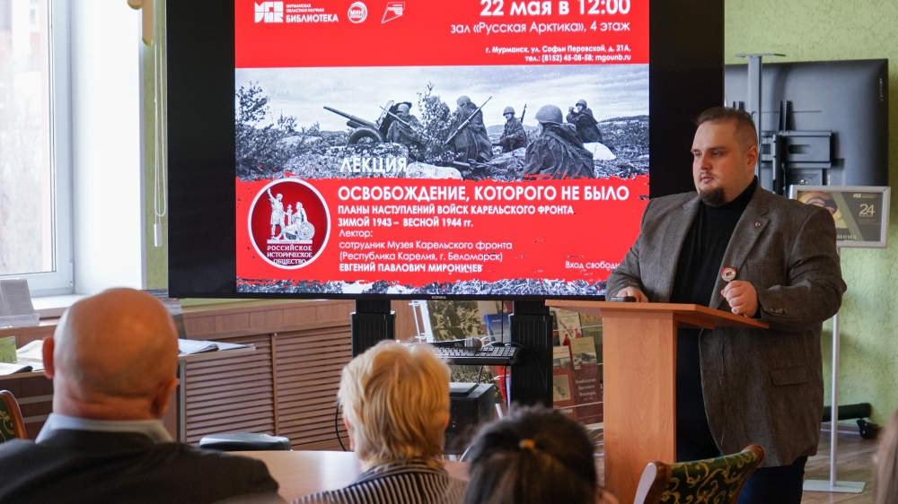 22 мая в зале «Русская Арктика» состоялась лекция «Освобождение, которого не было. Планы наступлений войск Карельского фронта зимой 1943—весной 1944 гг.». в рамках публичных чтений отделения Российского исторического общества в Мурманске.