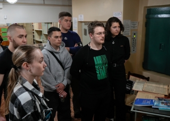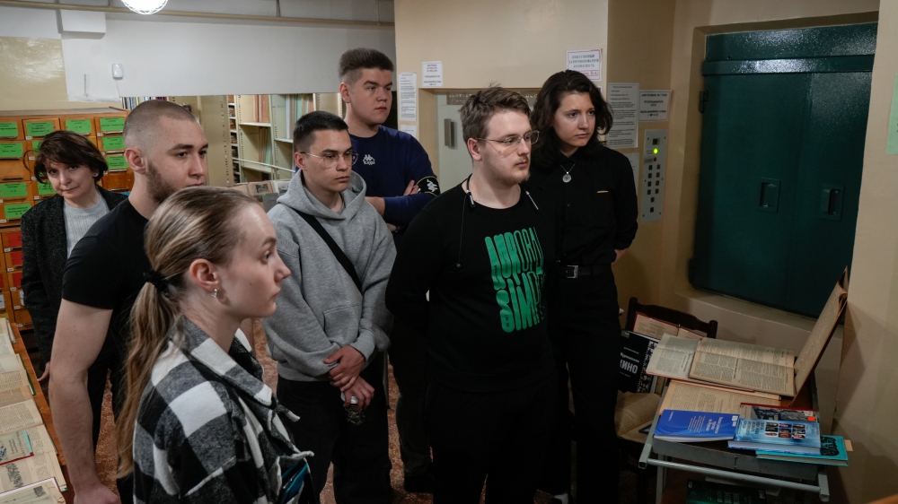 Для гостей библиотеки провели экскурсии по книгохранению, по библиотеке, а также по выставке «Зарождение туризма на Кольском полуострове в начале XX века».