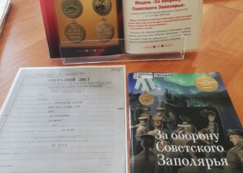 Школьники вспомнили о том, что Указом Президиума Верховного Совета СССР была учреждена медаль «За оборону Советского Заполярья», которой наградили более 350000 солдат, офицеров и тружеников тыла Мурманской области.
