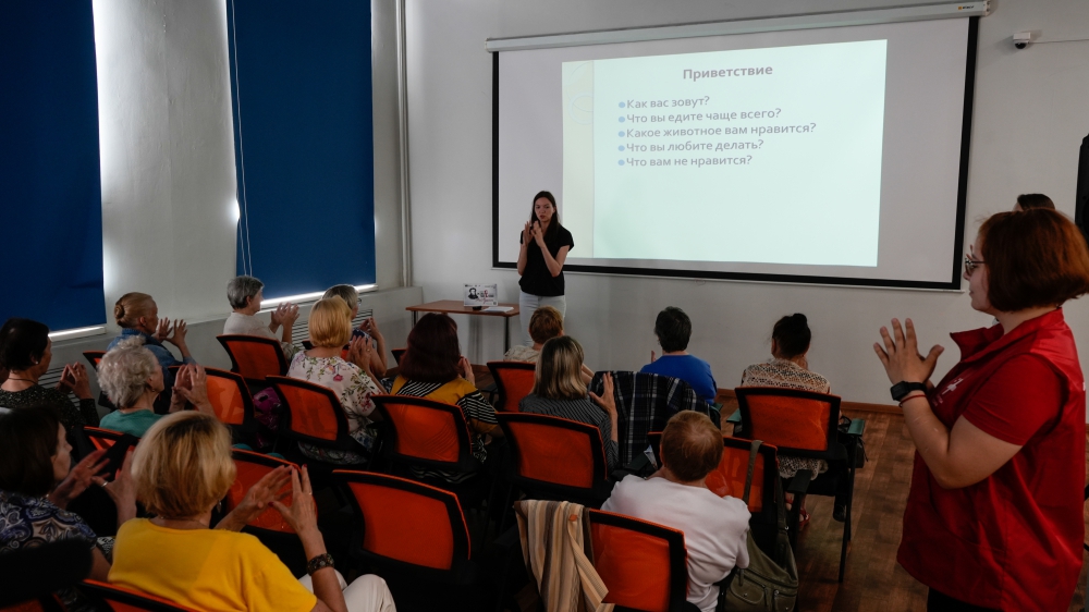 16 июля состоялась встреча «Когнитивный тренинг» со специалистом «Мурманского областного центра специализированных видов медицинской помощи» Марией Качерской. Специалист рассказала о специально разработанной системе упражнений для тренировки памяти, внимания, мышления. Она направлена на развитие мелкой моторики, которая, в свою очередь, помогает восстанавливать и поддерживать работу центральной нервной системы. Участники встречи опробовали упражнения на себе, отметили важность подобных тренировок для каждого.