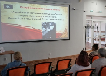 17 июля для участников клуба «Старшие» сотрудник библиотеки Людмила Лиштван провела квиз «Вашим подвигом жива Россия». Игра посвящена подвигам советского народа в годы Великой Отечественной войны и состоит из 5 раундов: «Разминка для везучих», «Герои Войны и Победы», «События и факты», «Победа в цифрах», «Не знаю – угадаю». В игровой форме присутствующие узнали много интересных фактов об этом грозном историческом периоде и познакомились с новыми книгами по теме.