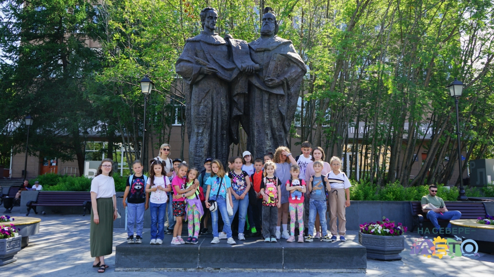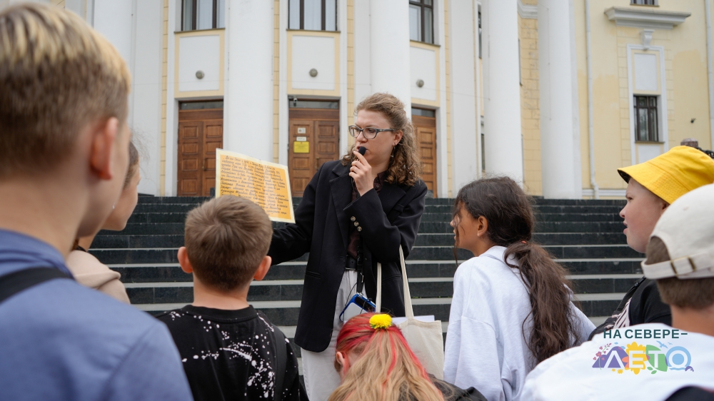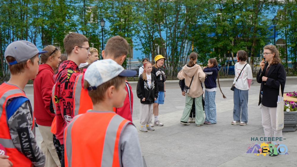 Также дети совершили прогулку по центру города и посетили пешеходную экскурсию «История Мурманска за 1000 шагов». Ребятам рассказали, как был основан город Романов-на-Мурмане, позднее переименованный в город Мурманск. Участники экскурсии рассмотрели черно-белые фотографии довоенного города и пробовали узнать в них современные здания.