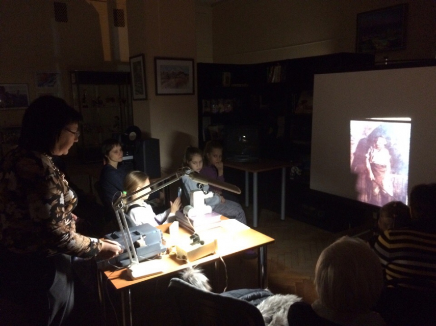 В уютном зале библиотеки среди книг, картин и пластинок собрались желающие окунуться в мир сказок и невероятных историй. Сначала сотрудник библиотеки познакомила посетителей с диапроекторами разных моделей, а затем началось волшебство: в зале был выключен свет, засветилась лампа диапроектора, и на экране появились картинки, которые начали оживать под звуки голоса человека, читающего текст под слайдом.