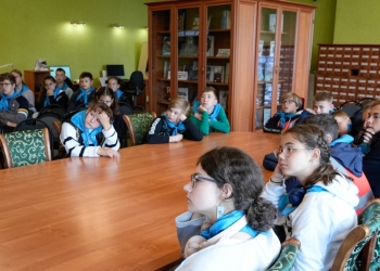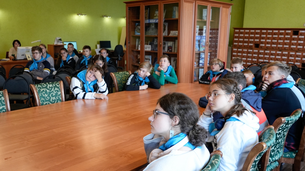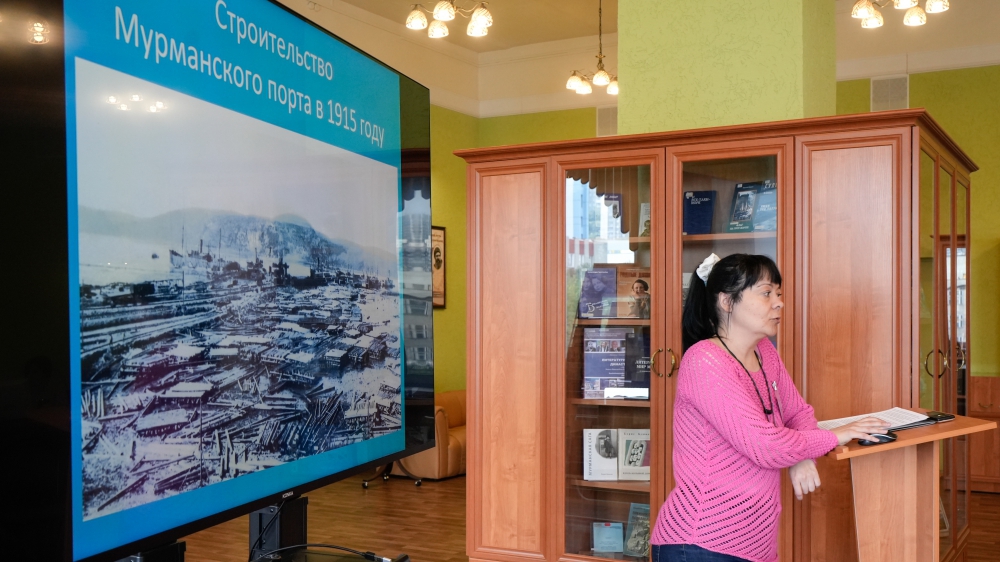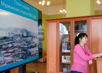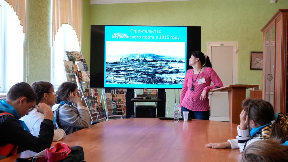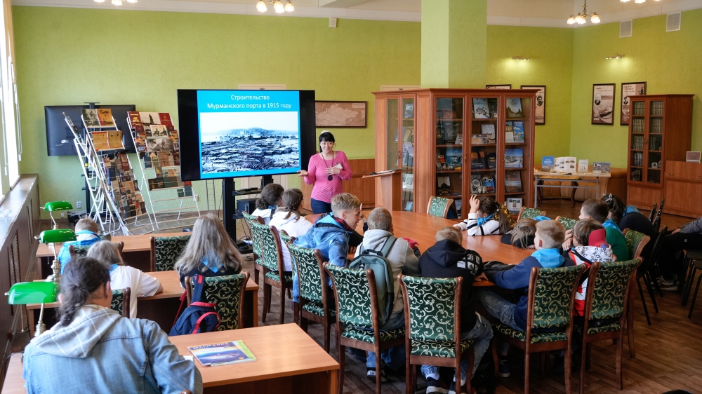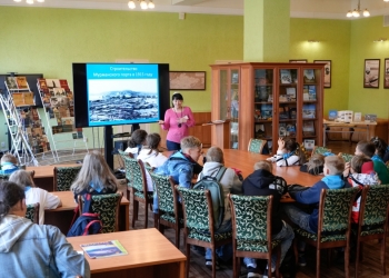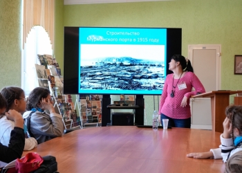 Участники мероприятия познакомились с историей Мурманска, узнали интересные факты о строительстве Мурманского торгового порта и железной дороги, совершили виртуальное путешествие по некоторым достопримечательностям столицы Заполярья. В завершении экскурсии школьники с интересом рассматривали в подзорную трубу с высоты четвертого этажа библиотеки памятник защитникам Советского Заполярья и мемориальный маяк.