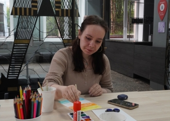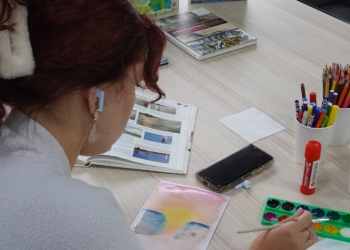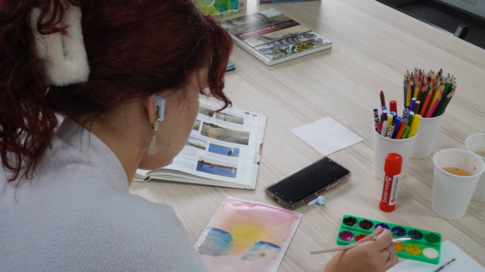 Для создания шедевров не требовались профессиональные художественные навыки — специалист отдела информации по культуре и искусству Юлия Шохова поэтапно объяснила, как выполнить работу от начала и до конца, помогла подобрать цветовые палитры, рассказала про различные акварельные техники и книги, которые могут пригодиться начинающим художникам.