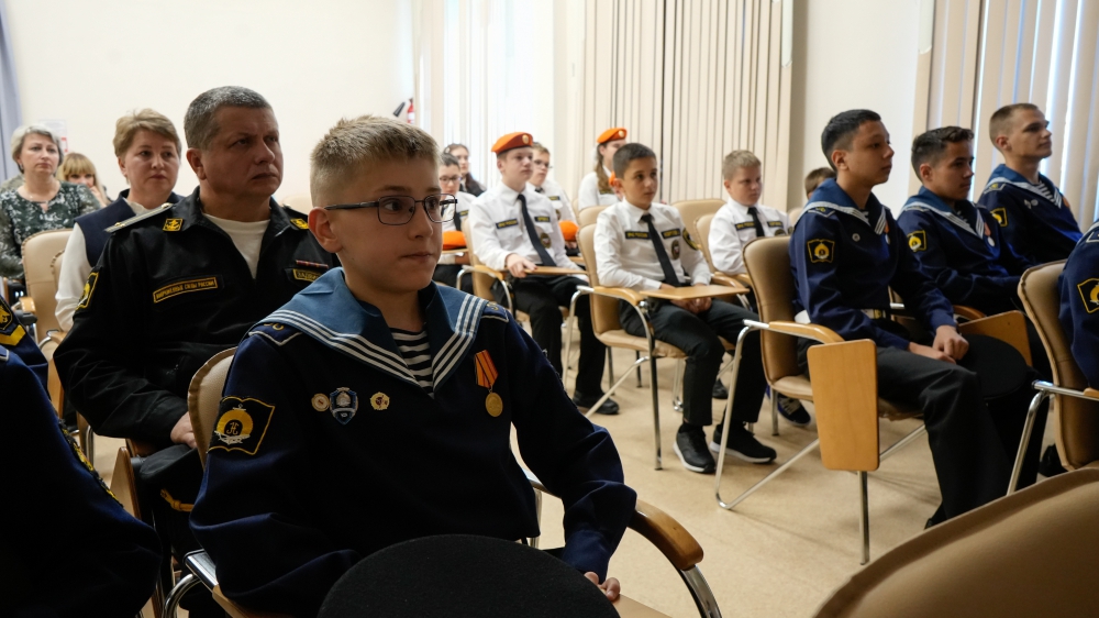 В рамках мероприятия, организованного специалистами библиотеки совместно с региональным отделением партии «Единая Россия», учащиеся кадетского класса МЧС России и филиала Нахимовского военно-морского училища пообщались с ветеранами силовых структур и участниками боевых действий.