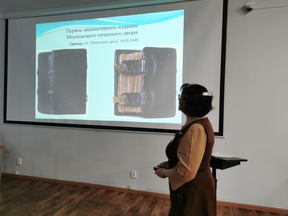 Слушатели отправились в удивительный мир миниатюрных изданий. Уже в античные времена встречались упоминания о таких книгах в трудах древнеримских писателей и ученых. С началом книгопечатания появились и первые печатные миниатюрные книги. Это были не только книги религиозного характера, но и произведения художественной литературы.