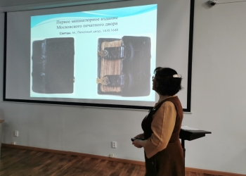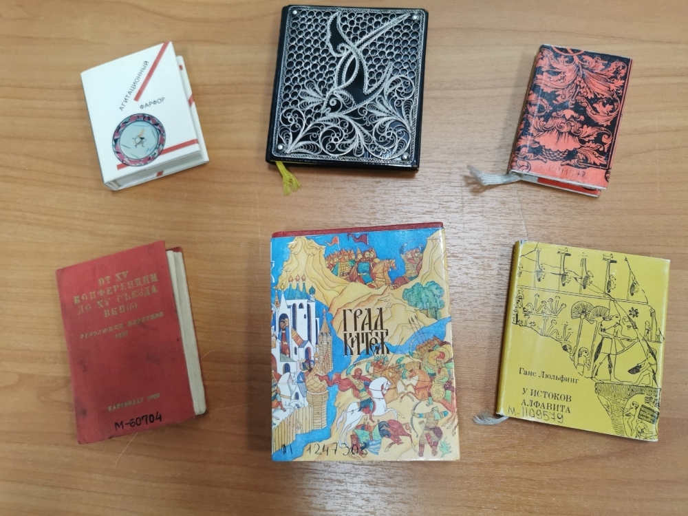 Ирина Алексеевна рассказала об истории миниатюрной книги, о великих коллекционерах и любителях таких изданий – Наполеоне Бонапарте и Марии Антуанетте. Литературное путешествие познакомило с уникальными книгами из фонда библиотеки: мини-книгой «Агитационный фарфор», редким подарочным изданием «Сказка о рыбаке и рыбке» А. С. Пушкина, репринтным изданием «Азбука» И. Федорова, мини-изданием «У истоков алфавита» Г. Люльфинга и первой книгой-малюткой, поступившей в «Научку» в 1945 году – «Резолюции февральского пленума ЦК ВКП(б) июльского и октябрьского объединенных пленумов ЦК и ЦКК ВКП(б) 1927 г.» 1932 года выпуска.