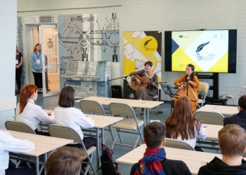 Особый, праздничный настрой создали приглашенные артисты: актриса, певица, член Союза театральных деятелей Российской Федерации Юлия Китова, дуэт Мурманской областной филармонии «Струны, струны» – Екатерина Ефремова и Ирина Волокославская, ученики и преподаватели Детской школы искусств №1 г. Мурманска: Наталья Капитанова, Екатерина Кулёва, Анна Крачковская, Василиса Нарватова и Есения Мацкевич. В их исполнении прозвучали песни на стихи поэтов Юнны Мориц, Ольги Седаковой и Юрия Левитанского, музыкальные композиции, среди которых, «Заполярное попурри», пьеса о героине произведений Эдуарда Успенского по имени Лариска.
