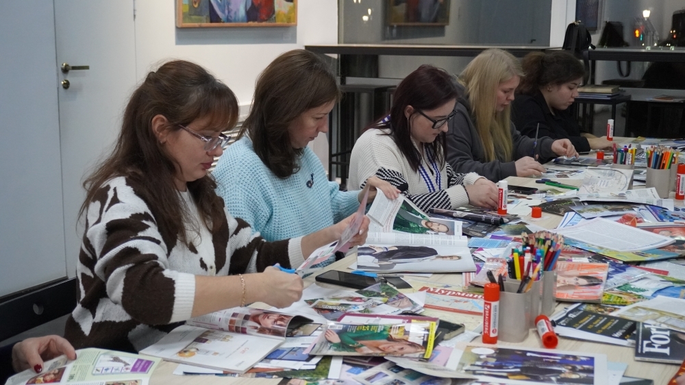 В рамках цикла встреч «Антистресс.Перезагрузка» состоялся мастер-класс по созданию Карты желаний. Специалист отдела информации по культуре и искусству Юлия Шохова поэтапно объяснила, как выполнить работу от начала и до конца, рассказала про технологию создания карты желаний, все техники и секреты.