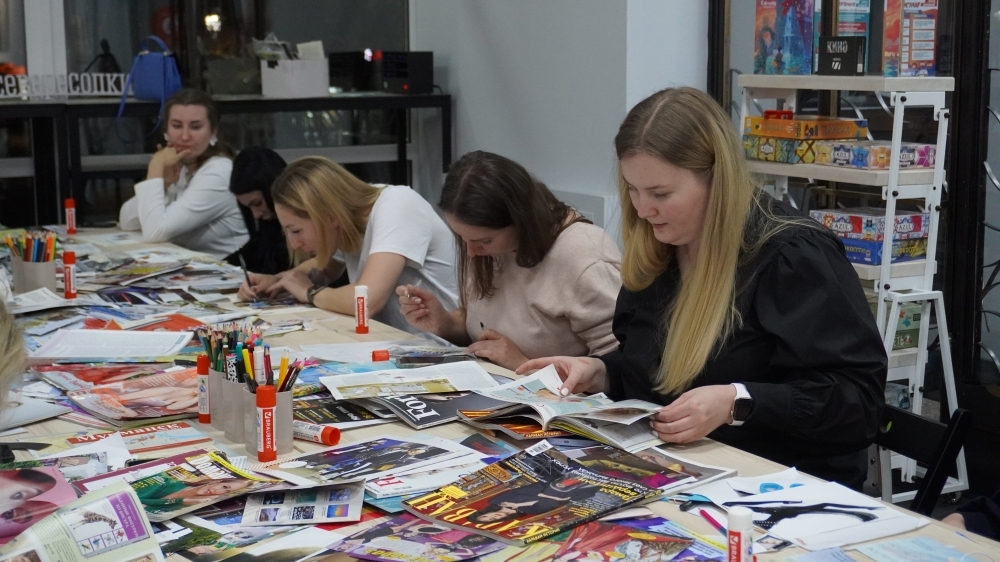 Для участия не требовались профессиональные художественные навыки – посетители использовали простую коллажную технику и фантазию. В дружной атмосфере удалось создать красивые карты желаний, а, главное, поверить в то, что все мечты исполнятся.