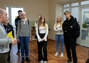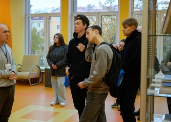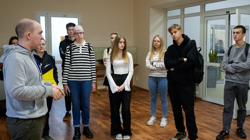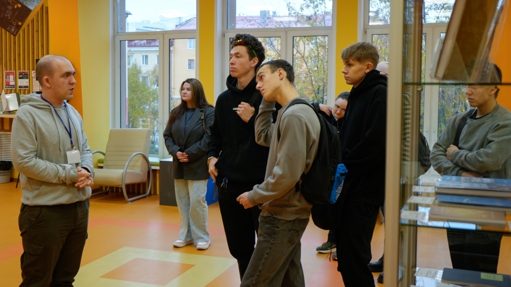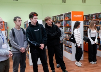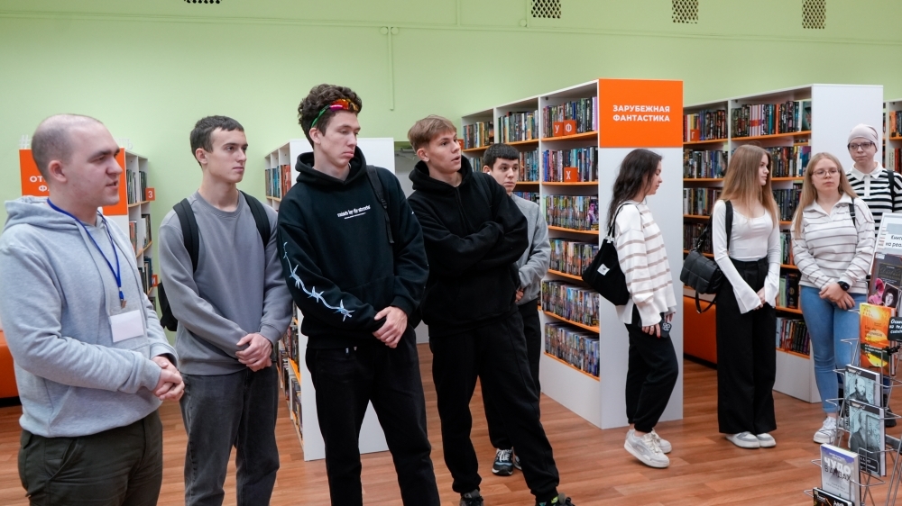 Молодые люди совершили экскурсию по библиотеке. Они с интересом слушали сотрудника, рассказывающего о просторных залах библиотеки.