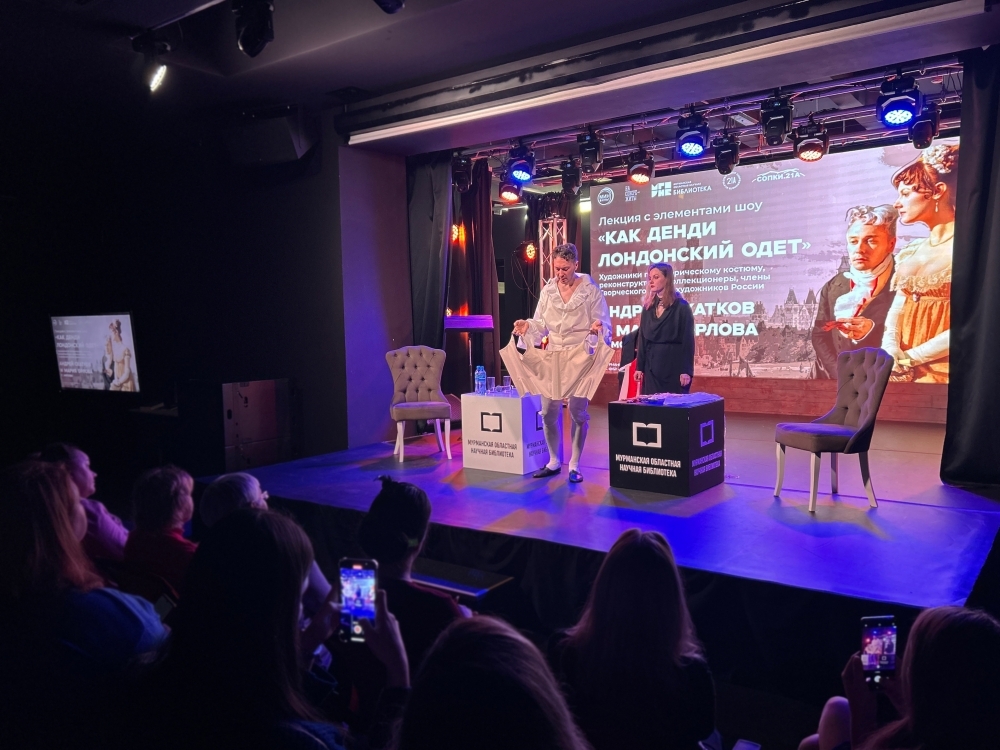 26 октября в Городской библиотеке имени Гладиной (г. Апатиты) прошла лекция «Нео-античность. Игры с натуральной формой». Андрей Скатков рассказал о интереснейшем и непродолжительном периоде моды начала XIX века. Французская буржуазная революция, борьба с «аристократической» модой, мысли о равенстве, проявленные в образе – всё это занимало умы женщин начала XIX века и лихорадило модную индустрию. И вот спустя десятилетие бурное революционное море вошло в свои берега и на непродолжительное время воцарилась новая модная империя, вобрав в себя всё лучшее от идей революции и мечтаний о демократическом свободном обществе, при этом отбросив всё острое и радикальное. С помощью реконструированных и подлинных предметов женского костюма, от нательного белья до аксессуаров, Андрей и Мария создали целостный образ, который сформировал очень яркое представление у зрителя. Поездка в Апатиты состоялась в рамках проекта «Арктический литературный десант».