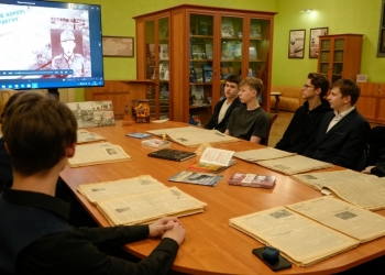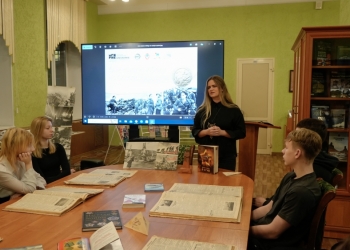 Школьники и педагоги ознакомились с материалами коллекции «Сохраняя память о войне» электронной библиотеки «Кольский Север», с фронтовыми письмами бойцов и командиров Карельского фронта и Северного флота и с отдельными периодическими печатными изданиями военных лет из фондов библиотеки. Также участникам встречи была представлена книжно-иллюстративная выставка «Битва за Север» с артефактами войны – вещами советских и немецких солдат и командиров, обнаруженных на полуостровах Средний и Рыбачий.