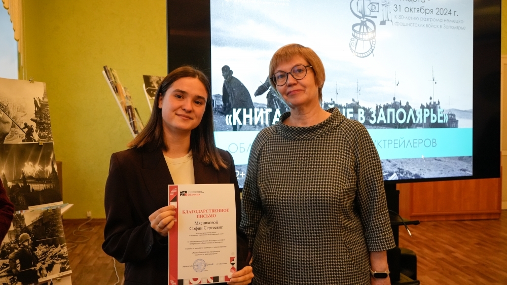 В Мурманской областной научной библиотеке состоялась церемония награждения участников Областного конкурса буктрейлеров «Книга о войне в Заполярье», посвященного 80-летию разгрома немецко-фашистских войск в Заполярье.